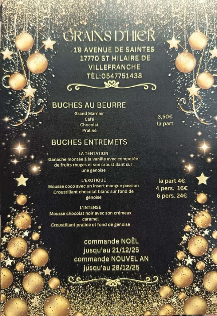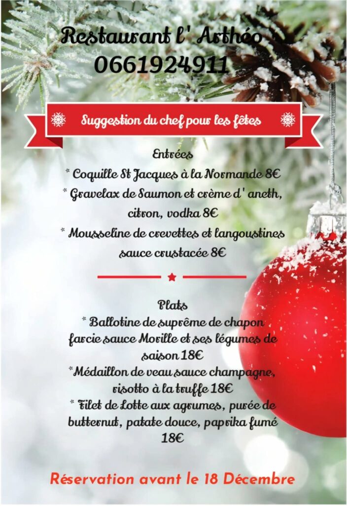 L’Arthéo notre restaurant, les Fines Goules notre boucherie et Grains d’Hier notre boulangerie se mettent en quatre pour vous proposer un Noël gourmand et accessible.