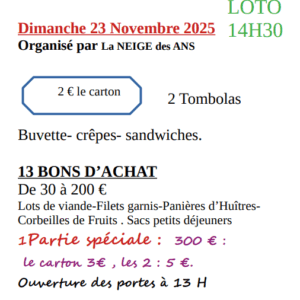 Loto Neige des Ans 23 Nov 14:00 - 19:00 Salle Polyvalente Jean Garnier St Hilaire de Villefranche(17)